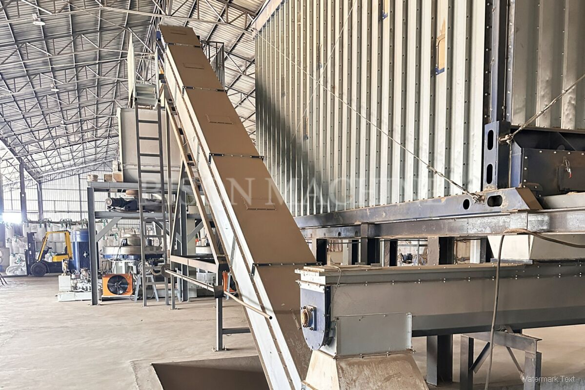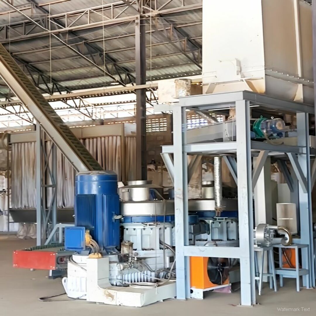This 6–8 TPH biomass pellet production line is designed to efficiently convert sugarcane leaves—even those containing small stones—into uniform, high-quality pellets. The raw material is first processed by a wood pallet crusher, which not only crushes the sugarcane leaves but also separates any stones or impurities. Material is then fed steadily through a hydraulic bin into two XGJ850 pellet machines for pelletizing. A cooling machine ensures proper pellet stabilization, and two packing scales complete the process with accurate and efficient packaging. The line delivers smooth operation, consistent pellet quality, and reliable industrial-scale production.