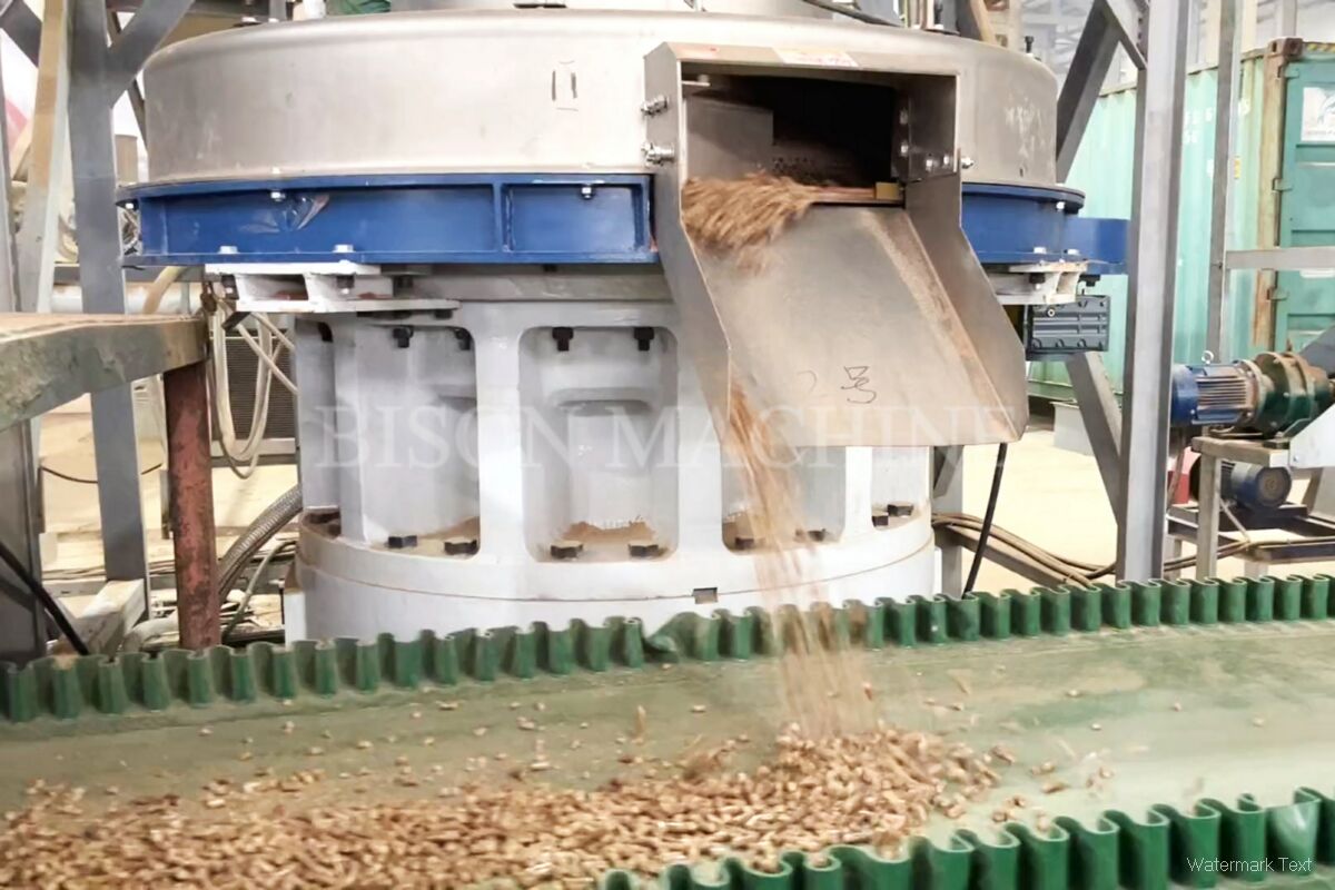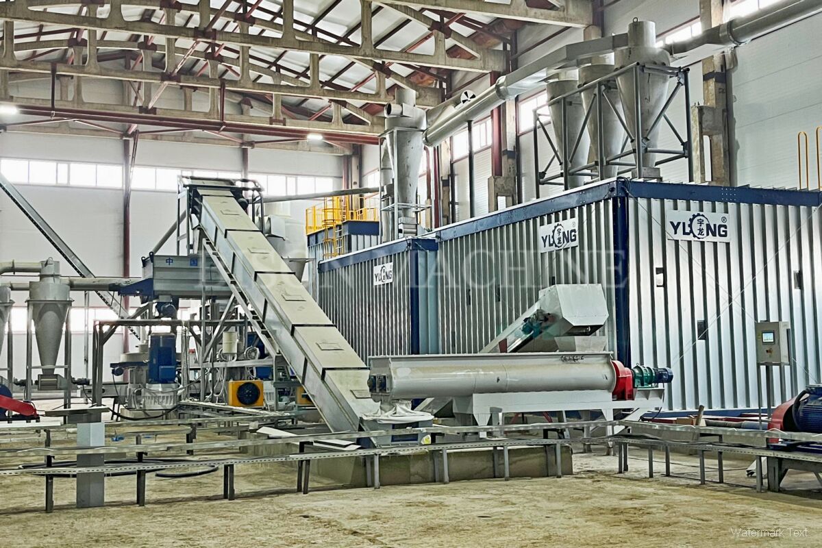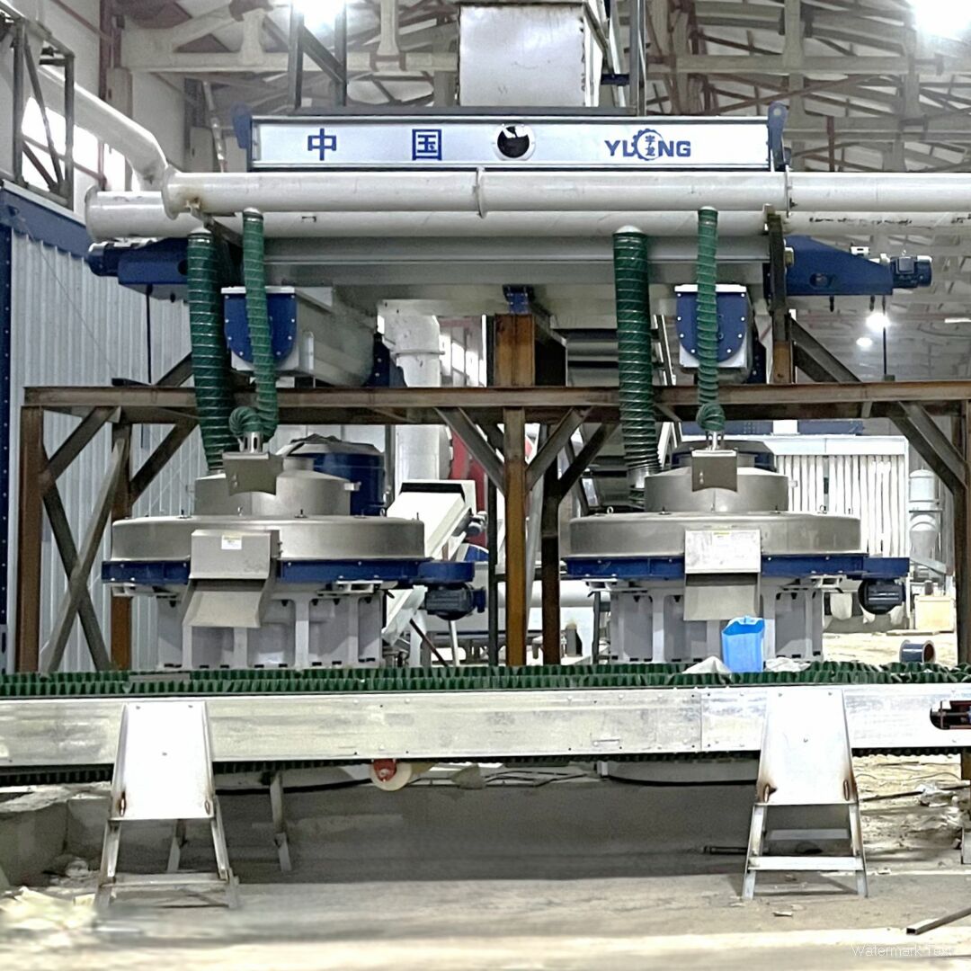 This 6–8 TPH biomass pellet line in Kazakhstan converts sawdust into high-quality pellets with stable performance. The material is further crushed in a hammer mill, dried in a drum dryer, and stored in a hydraulic bin before being pelletized by two XGJ850 pellet machines. A cooling machine and packing scale complete the line, delivering uniform pellets and dependable output for industrial-scale biomass production.
