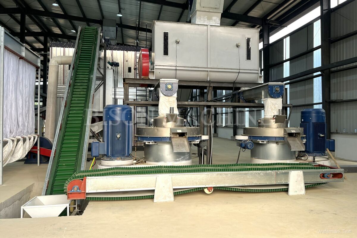 This 6–8 TPH biomass pellet production line is designed to process raw logs into high-quality biomass pellets with stable and efficient performance. The system is equipped with one wood chipper, one hammer mill, one rotary drum dryer, one hydraulic bin, two XGJ850 pellet machines, and one cooling machine. With a streamlined layout and reliable equipment configuration, the line ensures smooth material flow, consistent pellet quality, and dependable production efficiency for industrial biomass applications.
